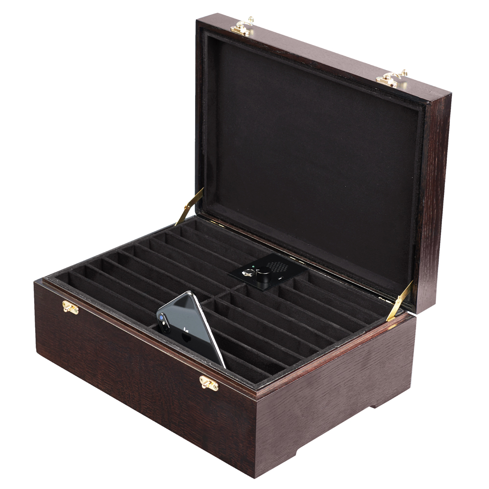 Акустический сейф Шкатулка-2/11 — это устройство для защиты конфиденциальных переговоров от несанкционированного прослушивания через сотовые телефоны. Прибор блокирует работу микрофона телефона путем генерации акустической помехи в диапазоне 250–4000 Гц, что делает невозможным дистанционную активацию и запись звука. Шкатулка поддерживает все современные стандарты связи, включая GSM, 3G и 4G/LTE, и работает в автономном режиме от встроенного аккумулятора. Её ключевое преимущество — возможность одновременной защиты до 11 телефонов, включая размер Plus. Устройство выполнено в корпусе из массива дуба и идеально вписывается в интерьер.